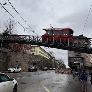 Toll war auch die kleine Bahn für auf den Berg genau wie in Lissabon. Versteckt in einem Haus in der Nähe vom Zwillingsplatz. Die Universität von Zürich liegt dort auf dem Berg und alle Studenten haben das Glück mit dieser Bahn hochfahren zu können.